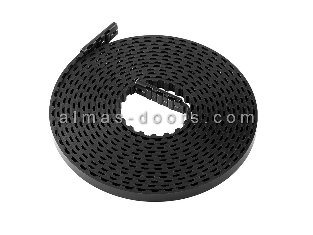 تسمه درب ریلی اتوماتیک دارای ضخامت های مختلفی است که ضخامت ۵ میلی متر روی ریل اصلی دستگاه قرار می گیرد و با چرخشی که دارد باعث می شود درب موقع باز و بسته شدن بر روی ریل اصلی قرار بگیرد و حرکت به آسانی انجام می پذیرد.